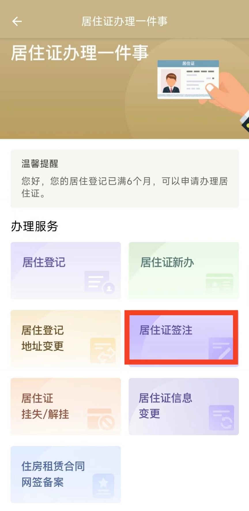 点击”居住证签注“,按照页面提示提交个人信息进行办理即可。